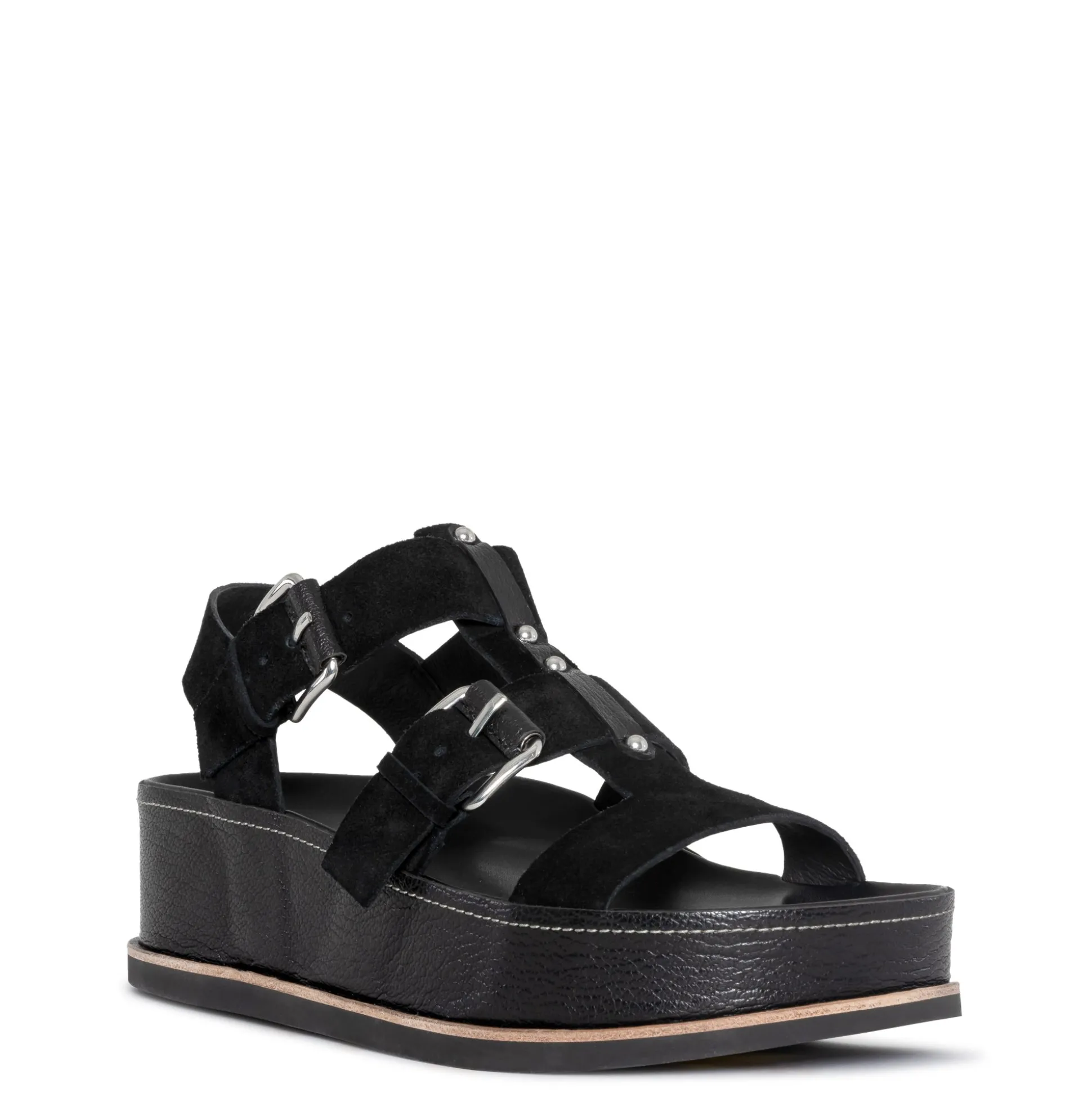 Elevate your style with the JESMIN wedge sandal. Its thick straps across the vamp make it a standout. This shoe is crafted from velvety suede and rests on a platform wedge, giving you the perfect height to pair it with anything. The memory foam padded insole ensures all-day wearability, while the durable rubber outsole offers extra support and stability.
