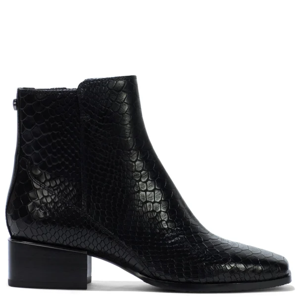 Revamp your fall style with the AZIA bootie that instantly adds sophistication to any outfit. Crafted with a snake print leather upper in a square-toe silhouette, this style is set on a durable rubber outsole. It’s made comfortable by a memory foam insole and has a convenient zip closure as well as an inner elastic gore for greater ease.