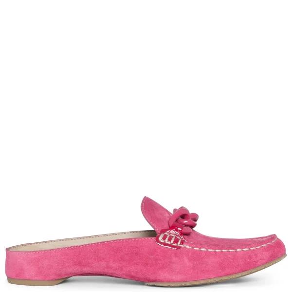 The BLESS slip-on in soft calf suede combines a mule silhouette with loafer details to create a uniquely polished casual style. With a memory foam padded insole and flexible rubber outsole, the design is ultra comfortable for extended wear. A gleaming statement chain adorns the vamp, giving this shoe a luxe finish.