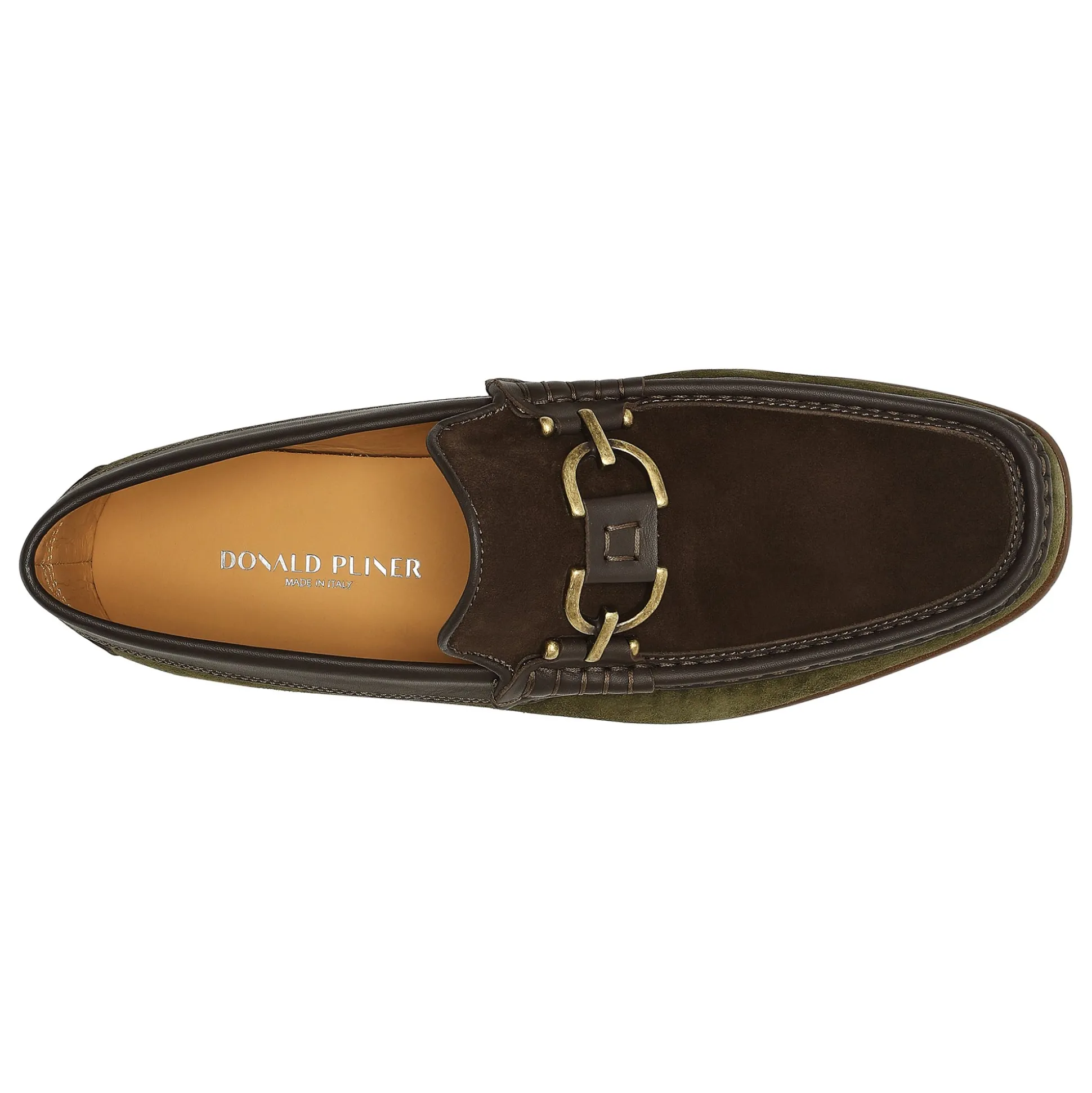 A classic Donald Pliner best seller, the DACIO loafer features a colorblocked suede and leather upper topped with a signature D ornament. It’s fashioned with a durable leather outsole and rests on a stacked heel. Made in Italy.