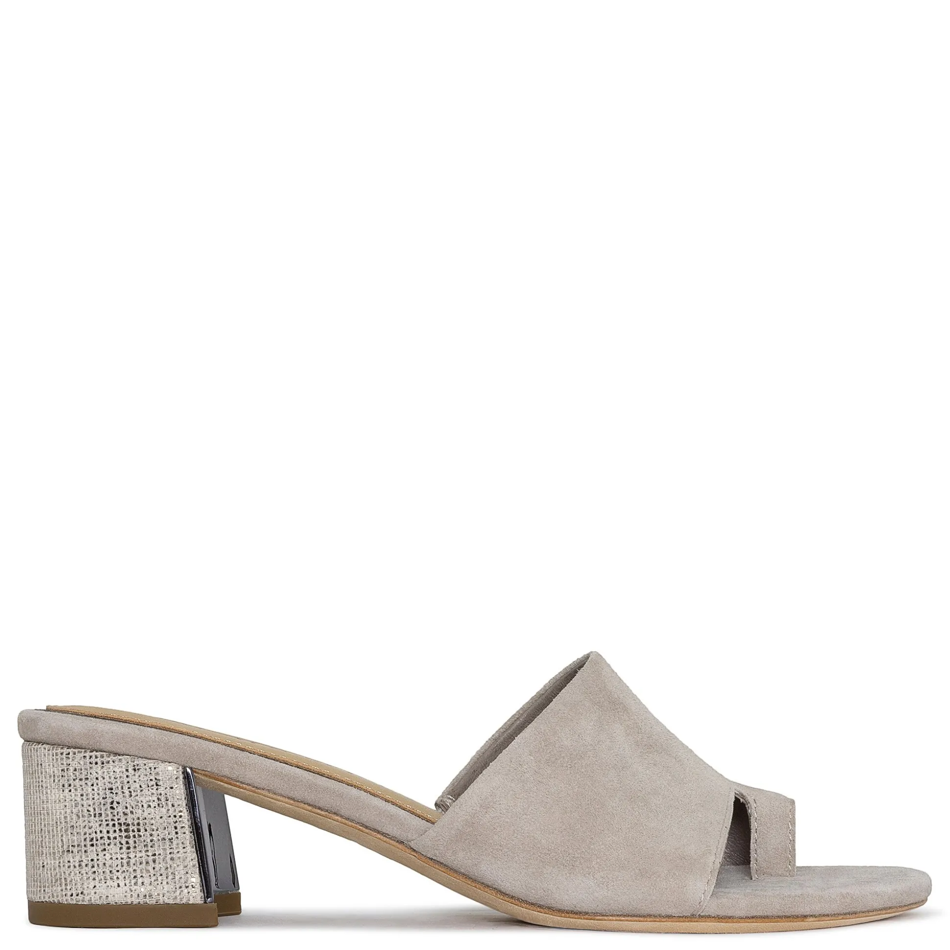 The MELROS block heel sandal in suede is glammed up with electroplated detail. A toe ring secures the fit with style, while a buffed leather sole and memory foam padding provide added comfort in this effortless modern sandal.
