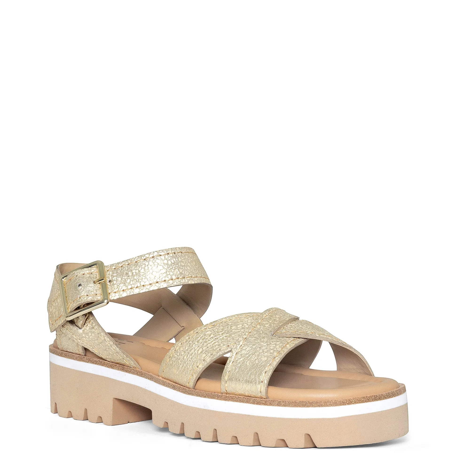 Step out in style with the PYPER sandal in pebbled metallic leather. This square-toe style features a multi-strap upper with an adjustable buckle closure. With a memory foam padded insole and a lightweight EVA foam lug sole, this sandal is sure to keep you comfortable all day.