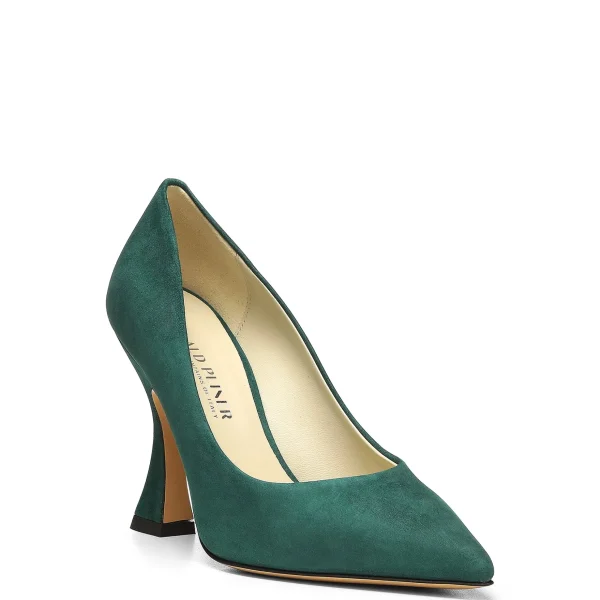 The SABINA pump has a classic, feminine look with its pointed toe and sculpted flared heel. Featuring a kid suede upper, soft leather lining, insole padding and a durable leather outsole, this elegant style keeps you comfortable while providing plenty of lift.