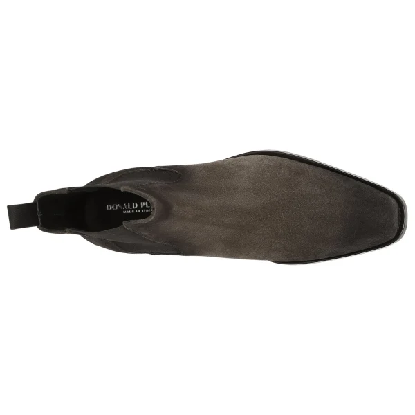 The SLOAN boot elevates the classic chelsea boot with a chic almond toe. An oily suede and calf leather upper with stretch gores and a back tab makes these ankle boots easy to pull on and off, and they’re incredibly comfortable thanks to a stacked block heel and memory foam insole padding. This slip-on boot style is finished with a leather outsole. Made in Italy.